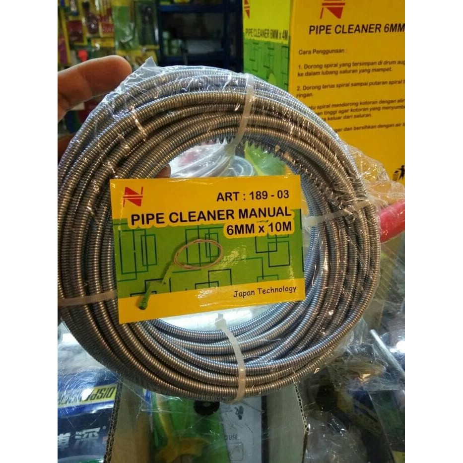 Timbunan di dinding pipa drainase tersebut akan menangkap sisa makanan, rambut dan kotoran-kotoran lainnya, sehingga pada akhirnya pipa drainase anda akan tersumbat sama sekali.Pipa Cleaner . panjang kawat 10 M . BESAR KAWAT 6 MM.Alat jenis ini biasanya di gunakan untuk Kotoran pipa seperti pelastik ,Rambut, sisa2 makanan dan kotoran2 lainnya . kecuali lemak dan minyak. tapi untuk lemak dan minyak biasanya tertarik juga bersama kotoran lainnya apa bila sudah di tarik keluar dengan alat ini karna untuk kotoran lemak biasanya menempel di pinggir pipa/dinding pipa .. ujung alat ini di disain ulir dan lancip fungsinya untuk mengkait/mengelilit kotoran, apabila kawat pada alat ini di putar,, Apabila di putar sudah terasa berat biasanya kotoran sudah tersangkut di ujung kawat , lalu lakukan penarikan , dan ulangi berulang kali sampai air bener2 lancar . barang tersedia boss , langsung dipesan , akan segera kami p