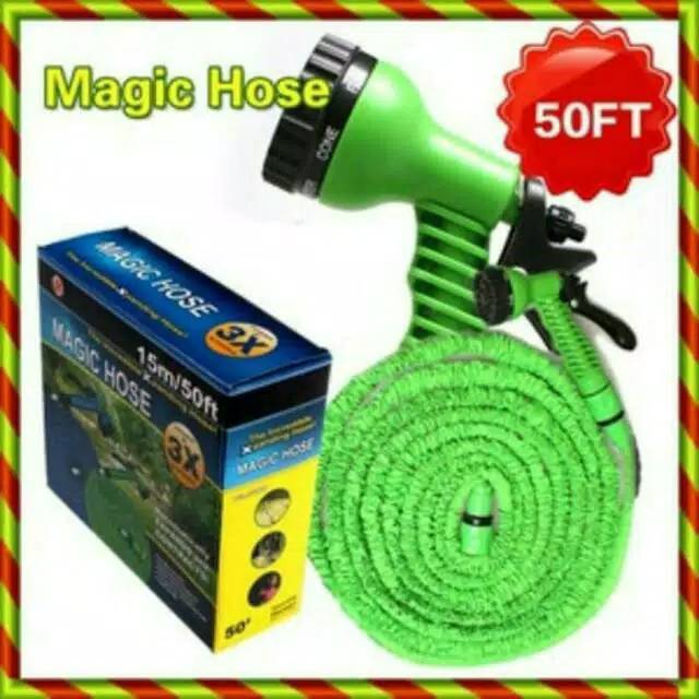 Selang Xhose 15MeterSelang Air Fleksibel / Xhose Magic + Spray Gun Wash 50 Feet / 15 MeterSelang Air + kepala selangSelang Air dgn Kelebihan Bisa Dipanjangkan dan Bisa Memendek SENDIRI !!!Panjang +- 15 meter kalo Ditarik/ saat air mengalir... Dan Cukup Dgn Mematikan Kran Air Dan Menghabiskan Air yg tersisa Di Selang Air Maka Secara Otomatis akan Memendek Sendiri !!! MantaffffFitur:1. Warna yang tersedia: Random2. Terbuat dari bahan berkualitas tinggi dan awet.3. Cepat mengembang untuk 3 kali ukuran aslinya ketika keran dinyalakan, dan kembali ke ukuran asli ketika keran air dimatikan.4. 7 mode yang bisa disesuaikan: datar, pusat, kerucut, penuh, kabut, jet, shower.5. Multi fungsi dalam kehidupan sehari-hari, seperti berkebun, mencuci mobil, membersihkan rumah, dll6. Ringan dan ukuran portabel, nyaman untuk dibawa.7. Dilengkapi dengan nozzle semprot, yang terbuat dari plastik ABS berkualitas tinggi.8. Ditutupi dengan kain poliester untuk melindungi ban dalam.9. Ergonomis pegangan nosel semprot, nyaman untuk digunakan.10. selang fleksibel tidak akan memutar dan kusut.Ukuran yang tersedia:50 feet (panjang aslinya adalah 5m, yang dapat memanjang hingga 15m)Isi Paket:1 x Selang Hose1 x Semprot Nozzle(konektor tidak termasukNON-GA