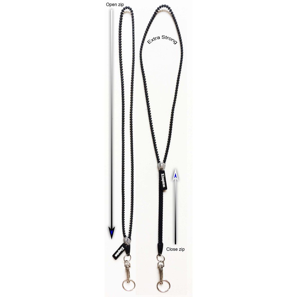 Lanyard unik model metal zip gantungan model zipper Kingston super kuatBisa dibuka dan ditutup seperti ritsleting, bisa dibuka sebagianBisa digantung di leher, panjang 50 cm, bahan