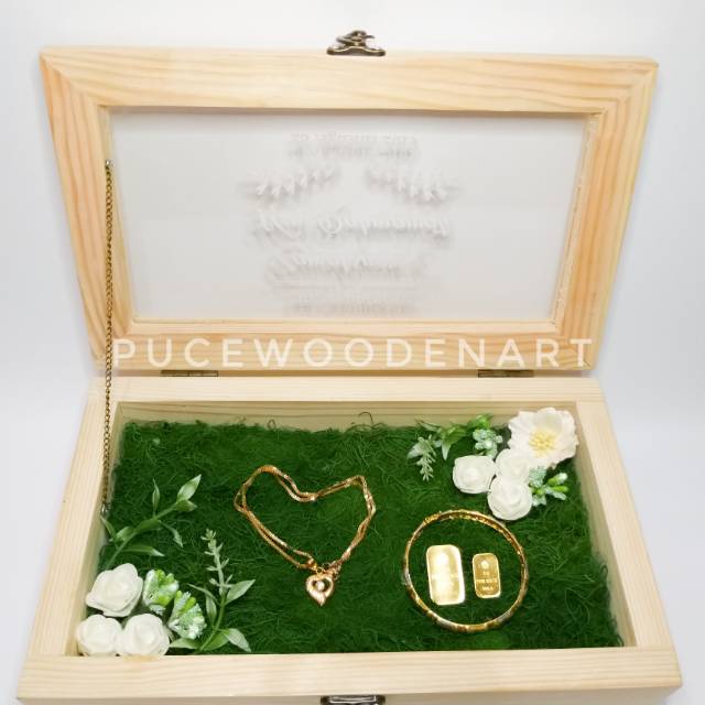 Kotak yg satu ini bisa banget buat tempat mahar kalian.Bisa untuk penataan mahar yang lebih flexibel cocok untuk mahar perhiasaan dan uang.Dengan detail paduan rumput hijau, bunga dan tentunya dengan tutup akrilik yang dapat digrafir dengan nama kalian ya dearUk. 27 × 16 cmSudah termasuk grafir nama ya dear.Jangan lupa cantumkan tulisan apa yang akan digrafir pada tutupnya.NOTE : PERHIASAN HANYA PROPERTY YA. TIDAK TERMASUK DALAM PRODUK #ringboxmurah #ringboxwedding #ringboxmurah #ringboxru