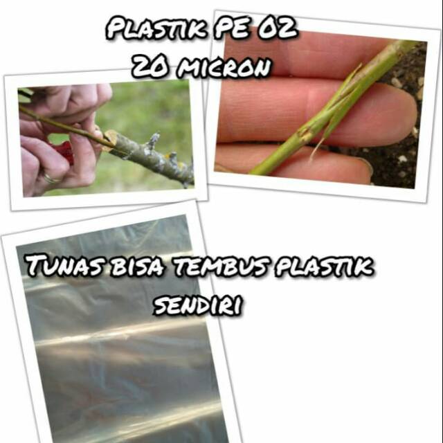plastik pe 02, 0,002, 20 micron untuk okulasi, grafting, cangkok susu, sisip, samcuk, sambung pucuk, sambung tunas, tipis, transparan, tunas tembus.sendirinya panjang 150 cm, lebar 100 cm jika dibuka#plastikokulasi #plastikpe02#plastik20mi