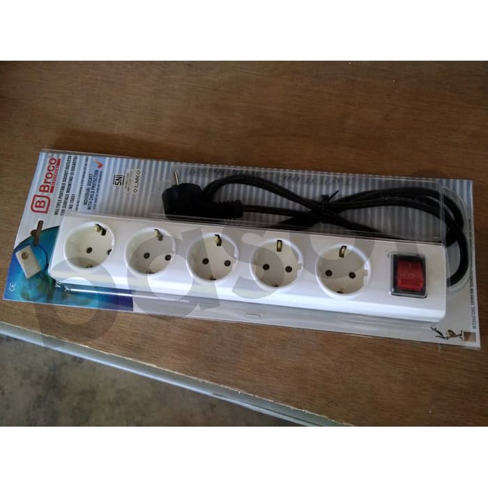 15851 NG Port Socket Outlet w/switch (5) 2500VA 250V WHLengkap dengan grounding dan On/Off SwitchLengkap dengan Child ProtectionSangat cocok untuk penggunaan indoorSudah termasuk kabel 1.5 meter~BROCO MULTY SOCKETPilihan tepat untuk kenyamanan dan keamanan hunian Anda~Multy Socket dibutuhkan untuk memperbanyak sumber koneksi listrik. Multy socket dapat digunakan untuk keperluan mengisi ulang batere HP melalui charger, koneksi power komputer PC/laptop/WiFi dan menyalakan berbagai perangkat alat elektronik lainnya secara bersamaan. Namun sadarkah Anda bahwa bahaya selalu mengintai apabila Anda memakai multy socket yang berkualitas rendah atau tidak ber-Standarisasi SNI?Korsleting listrik dapat terjadi atau plastik multy socket dapat terbakar karena tidak tahan panas!Untuk kenyamanan aktivitas sekaligus keamanan hunian Anda, pilihlah multy socket berkualitas seperti Broco Multy Socket yang telah memenuhi standarisasi SNI.Keunggulan dari Broco Multy Socket adalah:1. Memakai material "engineering plastic" berkualitas, lebih tahan terhadap panas dan tidak mudah terbakar.2. Memakai metal brass yang berkualitas yang menghantar listrik lebih sempurna.3. Memiliki child protection, aman terhadap jangkauan anak-anak.4. Memiliki desain antar soket yang lebih luas, tampilan menjadi lebih rapih.Made in Indonesia~Cintai Produk Indonesia~Juga tersedia:BROCO 15321 Stop Kontak Outbow 2 Lubang - tanpa kabel - BROCO 15330 Stop Kontak Outbow 3 Lubang - tanpa kabel - BROCO 15340 Stop Kontak Outbow 3 Lubang - tanpa kabel - BROCO 15350 Stop Kontak Outbow 5 Lubang - tanpa kabel - BROCO 15360 Stop Kontak Outbow 6 Lubang - tanpa kabel - Dengan kabel listrik:BROCO 15853 Stop Kontak Extension 4 Socket | w/ 2x USB Charger - barang tersedia boss , langsung dipesan , akan segera kami p