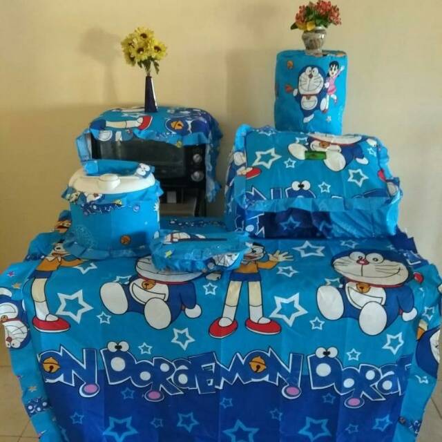 Perlengkapan meja makan yg komplit dengan taplak meja, tudung saji, tutup galon, tutup kulkas, tempat tisu, tutup magic com,, #kitche