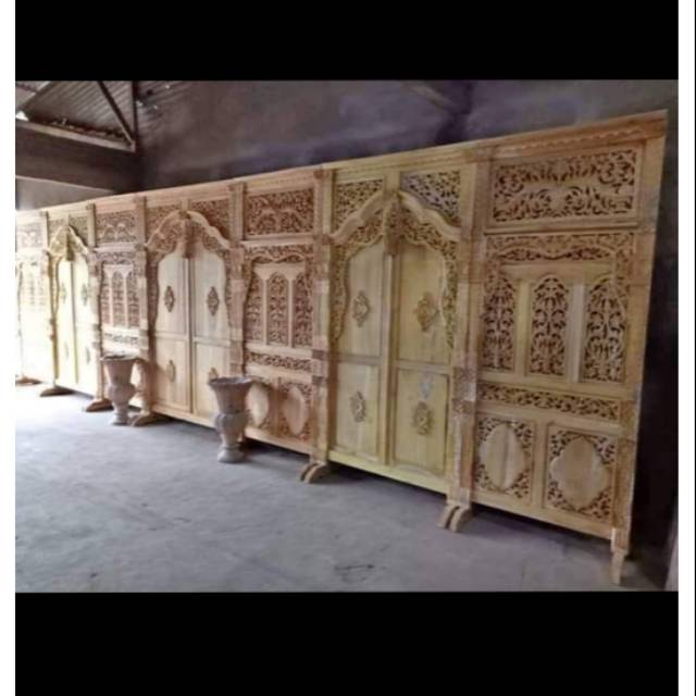 gebyok dekorasi pelaminan model klasik panjang 8m tinggi 265cmbahan kayu nangka finishing cat sesuai pesanan#gebyokpelaminan #gebyokjawa #dekorasipernikahan #dekorasipengantin #dekorasipelam